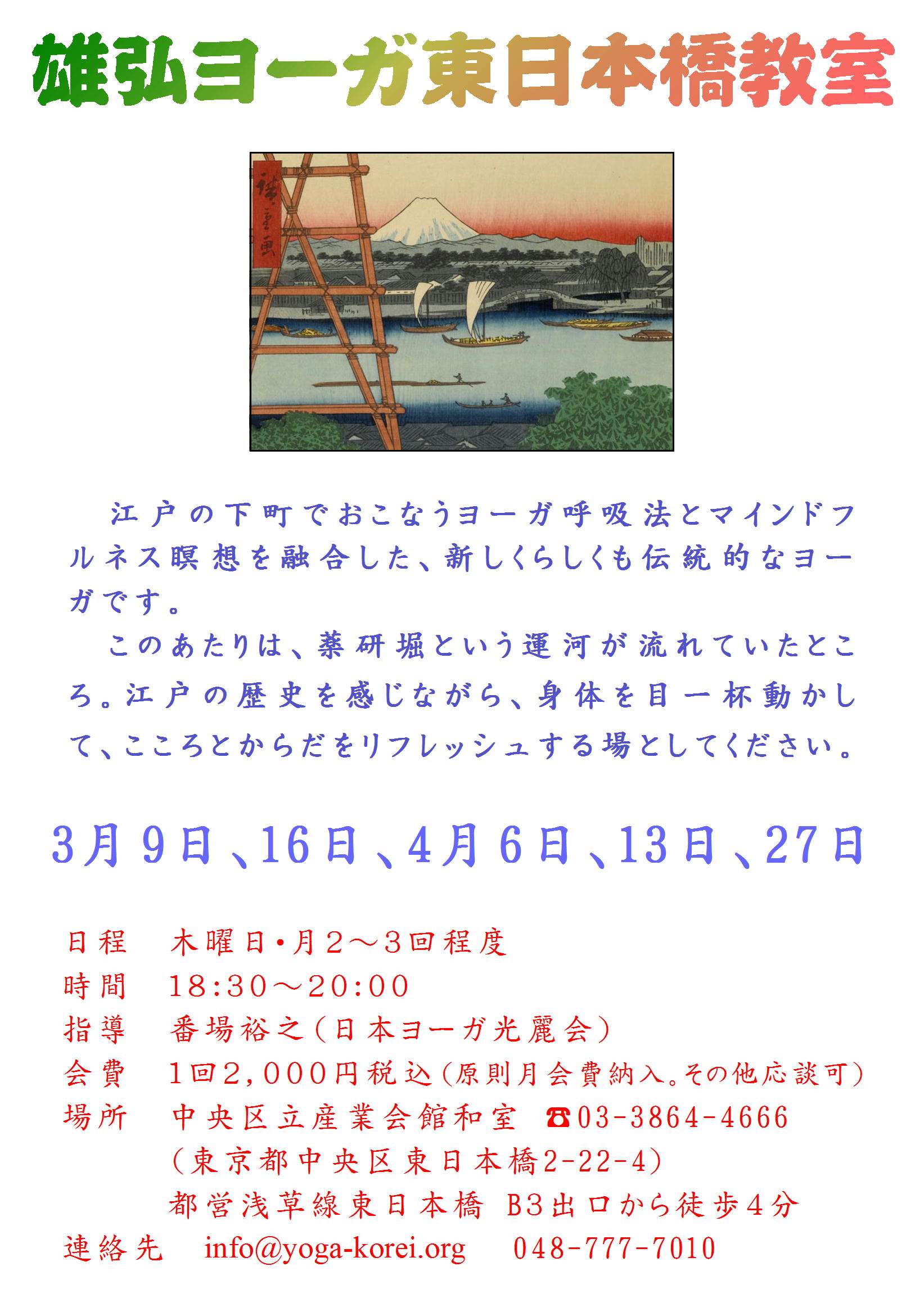 江戸の下町でおこなうヨーガ呼吸法とマインドフルネス瞑想を融合した、新しくらしくも伝統的なヨーガです。